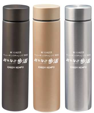 毎回、期間中の歩数で入賞された方には、QUOカードを進呈していますが、今回はQUOカードに加え、第10回目の開催を記念して、感謝の気持ちを込めて、参加者全員にオリジナルボトルをプレゼントいたします!